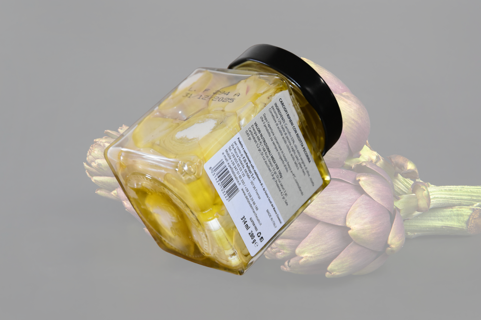 Scopri il gusto autentico e raffinato dei Carciofi Ripieni con Ricotta Pecorina di Delizie del Marchesato. Preparati con carciofini freschi (53%) e arricchiti con olio extra vergine di oliva, questi carciofi sono farciti con una deliziosa ricotta pecorina (12%) ottenuta da latte di pecora, caglio e sale, e insaporiti con un tocco di pepe nero.
