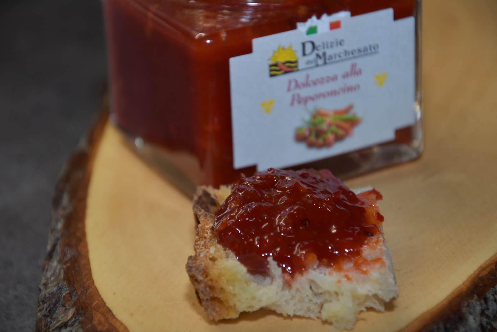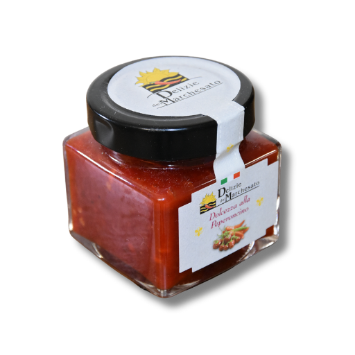 La confettura di peperoncini, è una tipica preparazione calabrese, dove il peperoncino diventa più delicato e gentile, mantenendo comunque il suo gusto tipico. Il peperoncino è il protagonista dell cucina calabrese, ed oltre ad essere gustoso è anche ricco di sostanze buone per il nostro organismo come ad esempio la vitamina c.Gustate la confettura di peperoncini piccanti accompagnandola con un tagliere di formaggi misti, si consigliano, ricotta fresca o affumicata e la robiola. Per chi cerca sapori più delicati si consigliano formaggi più cremosi e morbidi a pasta molle, come il Quark, che smorzano in parte la piccantezza senza togliere il gusto. Se cercate invece sapori più forti e decisi, scegliete formaggi stagionati come per esempio il pecorino. Nati dall’amore per la Calabria tutti i prodotti dell’azienda Delizie del Marchesato, sono realizzati seguendo le antiche tradizioni locali con ingredienti 100% italiani. Ingredienti: peperoncino, peperoni rossi, zucchero, limone , pectina, sale, aceto di vino, aromi naturali, acido citrico. La confettura di peperoncino artigianale è disponibile nella confezione da gr. 180.r